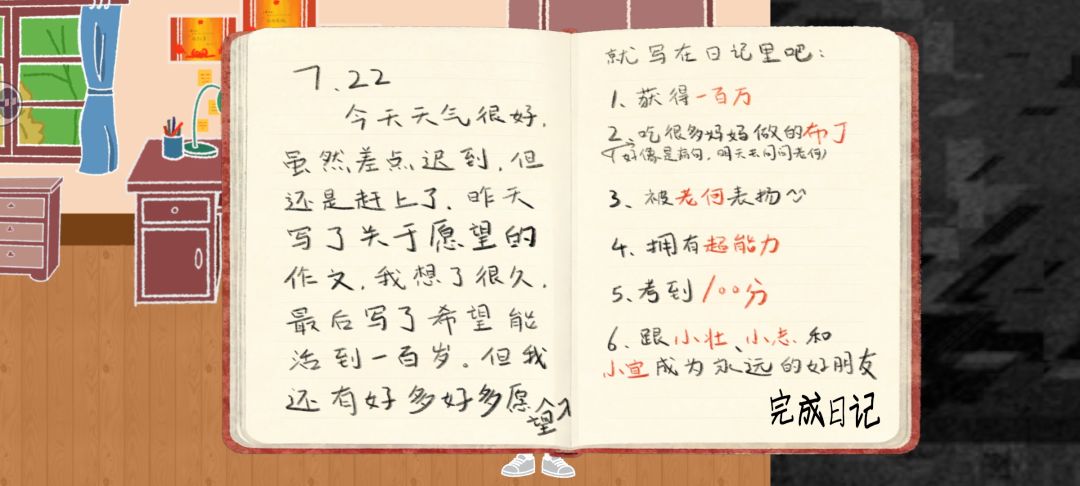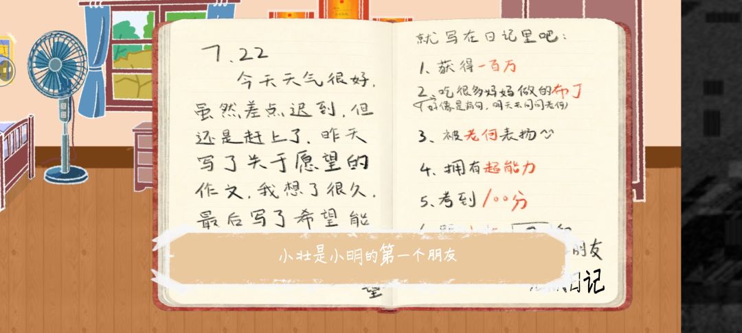 然后因然后因为你给妈妈买了菜,她很开心,允许你吃布丁。吃完布丁之后就能回卧室,打开日记了。这里路过电视打开能看到彩票号码。