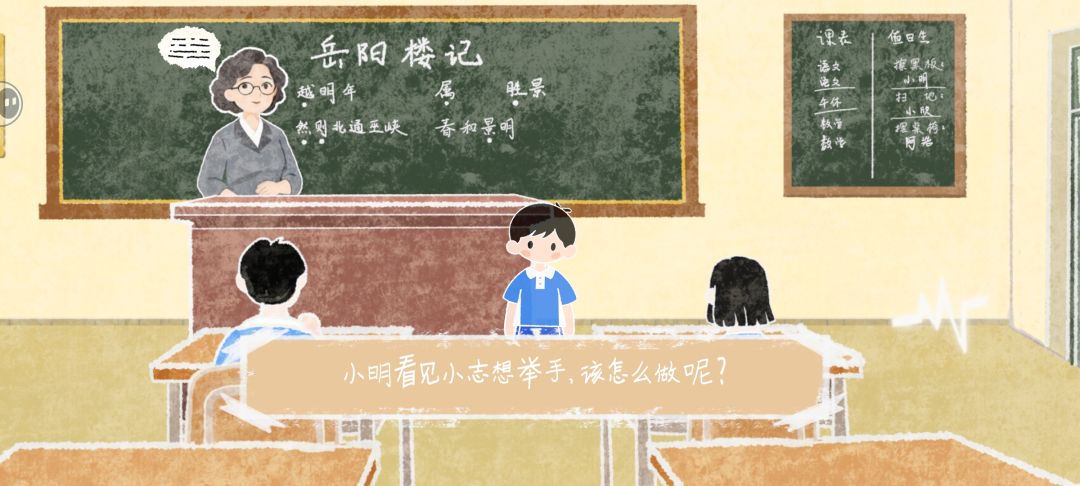 考完出门遇到小壮,他的魔方被收了。右边走去办公室,经过隔壁班的时候,会发现他们的门上有一个心电图,藏的很隐蔽,可以收集一下。进门左上角那一个就是语文老师的桌子,过去收集魔方和老师的工作日志。顺带一提走到左边尽头有个柜子,如果撬锁的话会触发警报,导致这个场景重置,但是可以直接把手伸过去,就知道柜子里没有魔方。拿到魔方之后回来,把魔方给他就能回家了。