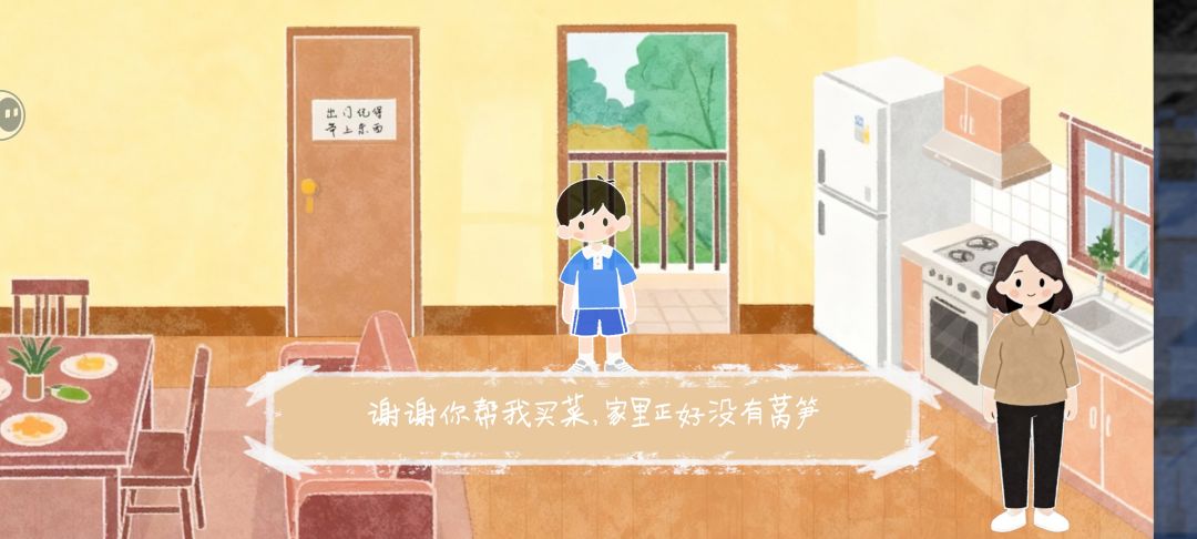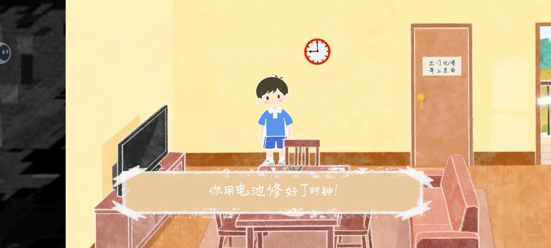 早上点床会睡回笼觉导致迟到不要点。直接出门也会迟到,需要先在柜子里找到电池修好客厅的闹钟。别忘了把桌上东西都带上。以及这里日程表会告诉你晚上要帮妈妈买菜。