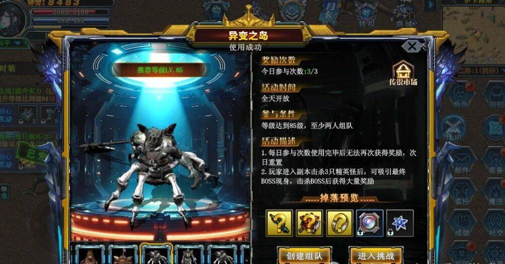 组队副本「异变之岛」是机械部件唯一产出地,每日有3次挑战机会,失败不耗次数;进本后5分钟内杀3只精英怪,否则BOSS不现身。