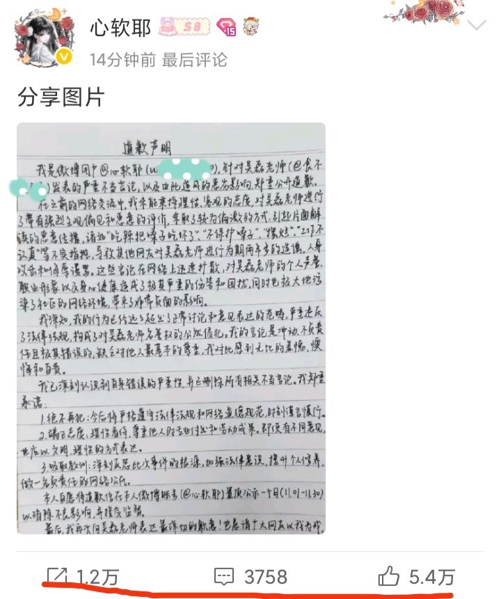 值得一提的是,道歉信由吴磊本人提供文本,且需要置顶公示1个月