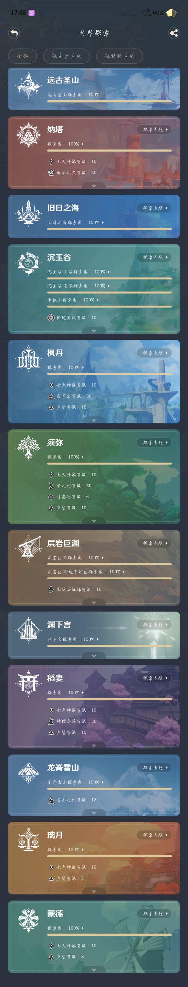 还是说未来还会继续出纳塔和枫丹?不至于吧?🤔我的情况是所有区域满探,除了须弥沙漠跟着穿山甲跑的,其他地方全是自己跑的没跟攻略。但只有枫丹和纳塔换不够,其他地方就只有摩拉可以换了