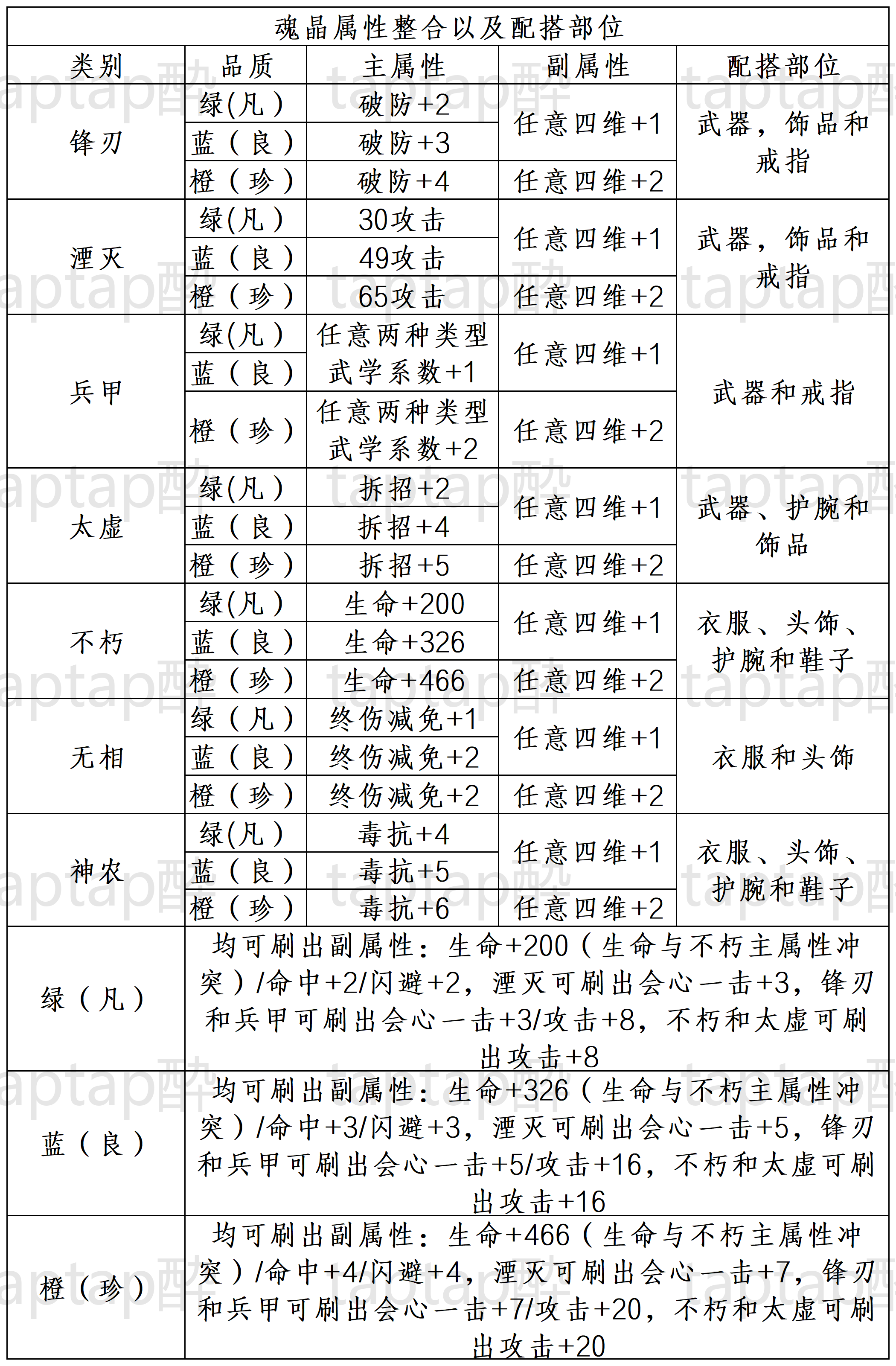 这个是本次副本带来的新玩法,极大的提法了玩家的面板属性,我将对魂晶属性情况进行整合;