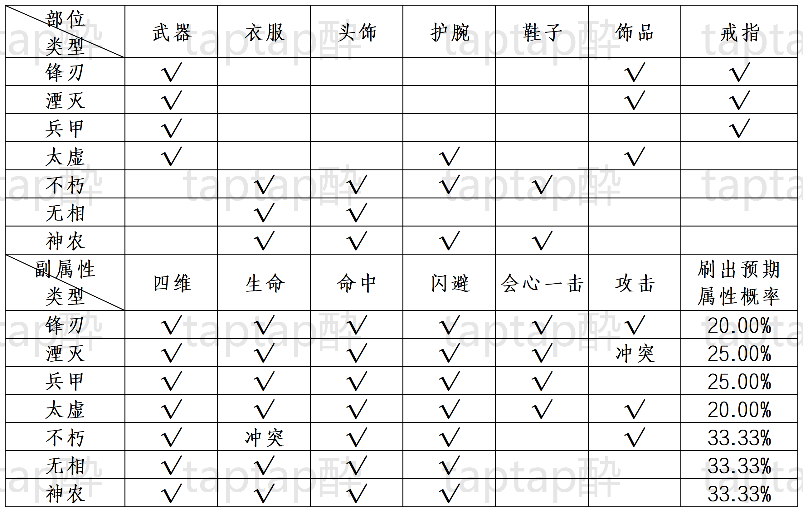将各个属性情况和穿戴部位转换为勾选表格如下;