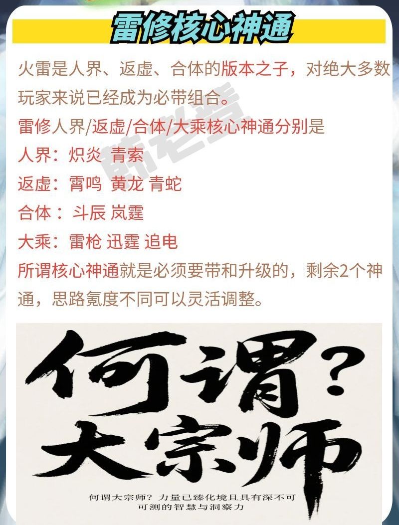 雷修大宗师4.0人界返虚合体大乘神通搭配