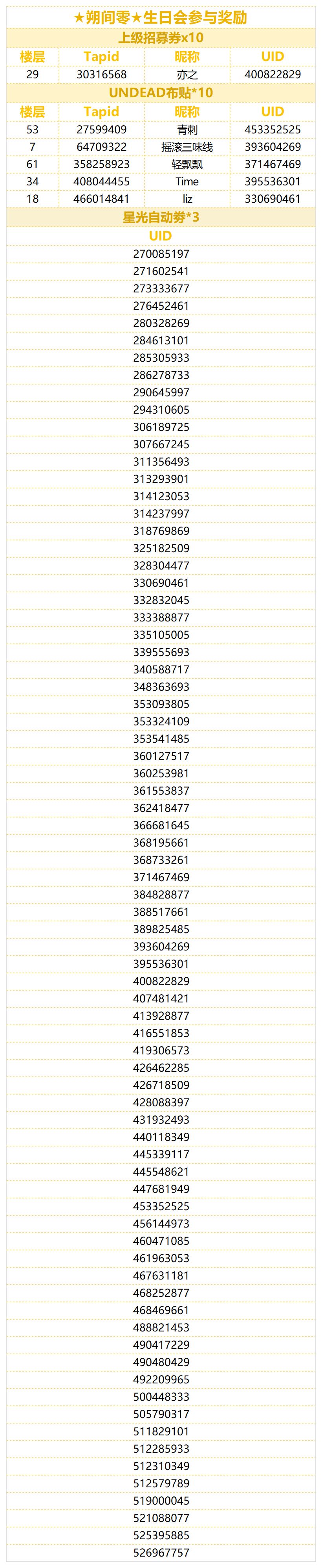 助理君已统计全部正常显示楼层与图片,奖励会在7个工作日内发放到制作人的礼物盒中,礼物盒内奖励保存期限为10天,请注意查收~!