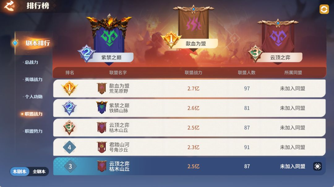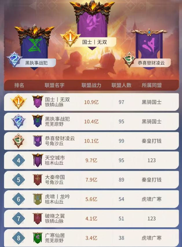 目前【茶楼系】同盟战力为区服第一,后续若无重大变故,有望拿下王城。
