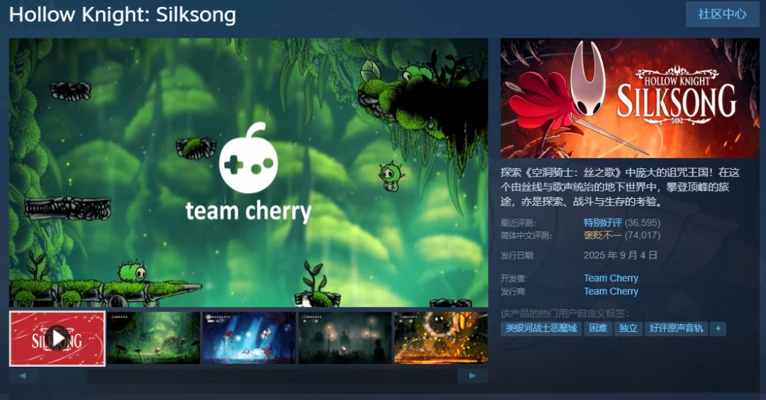 获得 Steam平台游戏《空洞骑士:丝之歌》一份