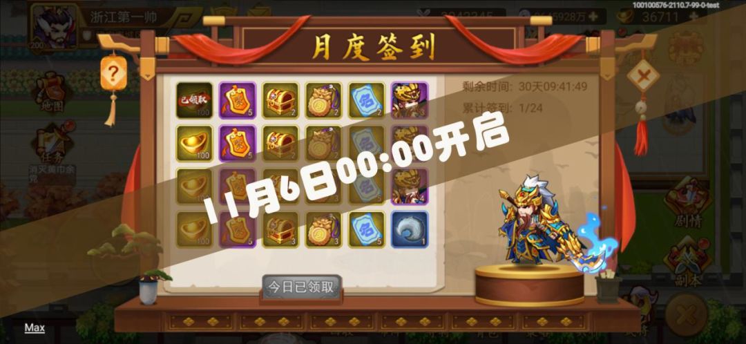 月度签到(活动时间:11月6日00:00~12月6日23:59)