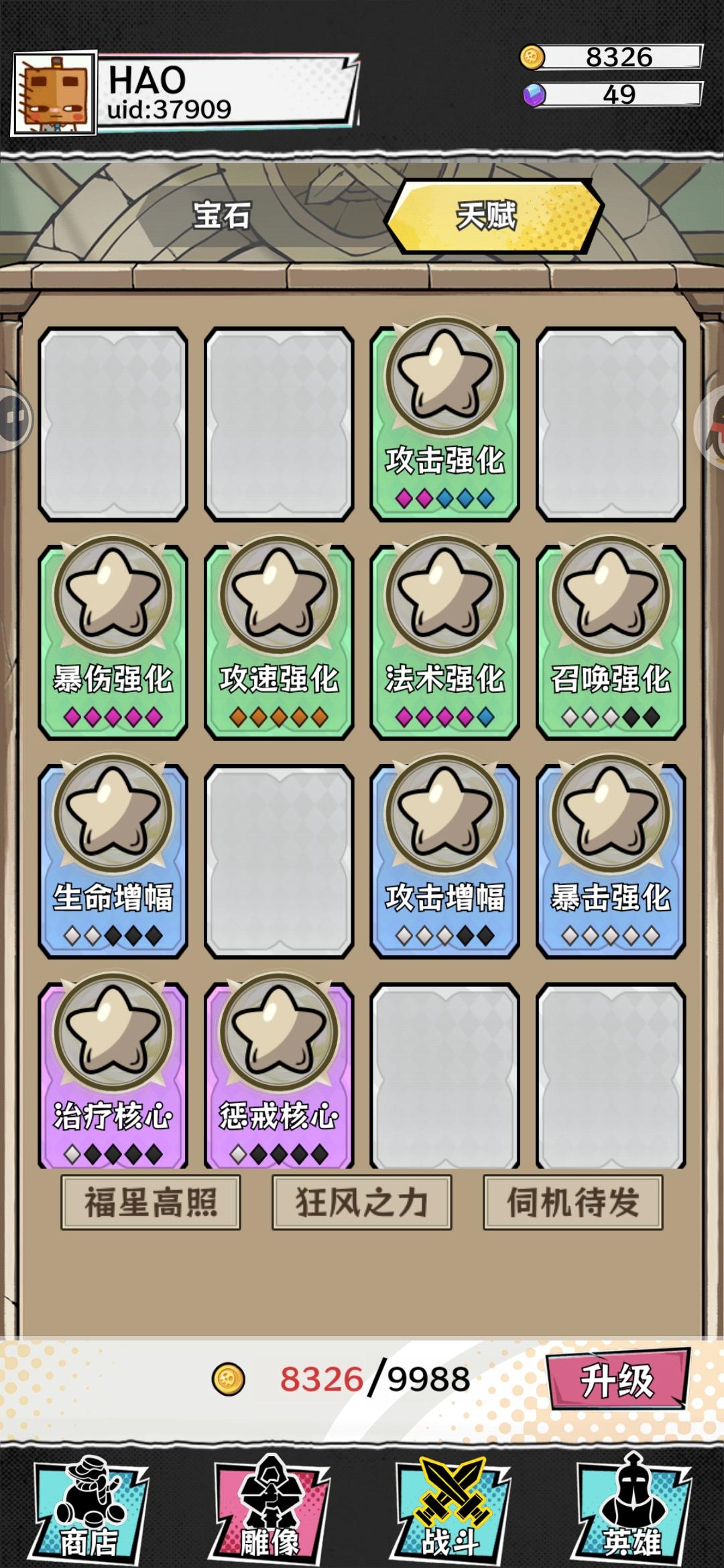 雕像:选择百分比攻击、攻速、法强、暴击、爆伤和攻击,紫色核心可以不选!!天赋选择:玻璃大炮、力量之源、狂风之力、致命一击