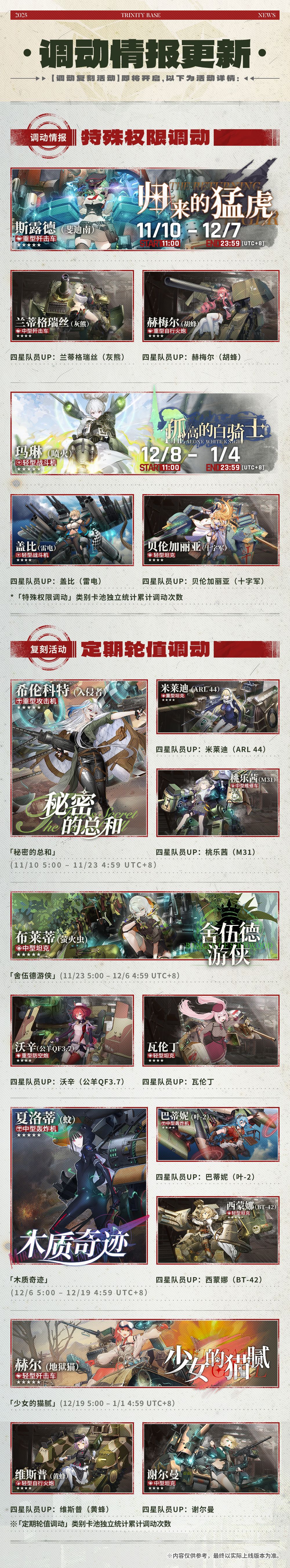 尊敬的司令官,【调动复刻活动】即将开启,以下为活动详情: