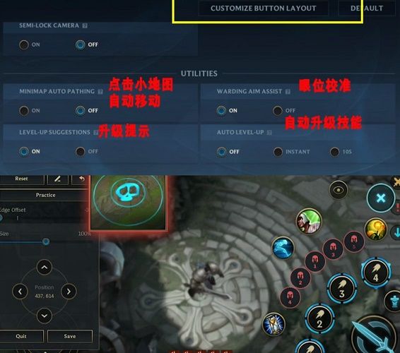 lol手游自定义设置教学1、在界面的上方有“CUSTOMIZE BUTTON LAYOUT”点击,按照玩家自己的习惯去进行按键调整,还可以调整一些技能按键的大小。