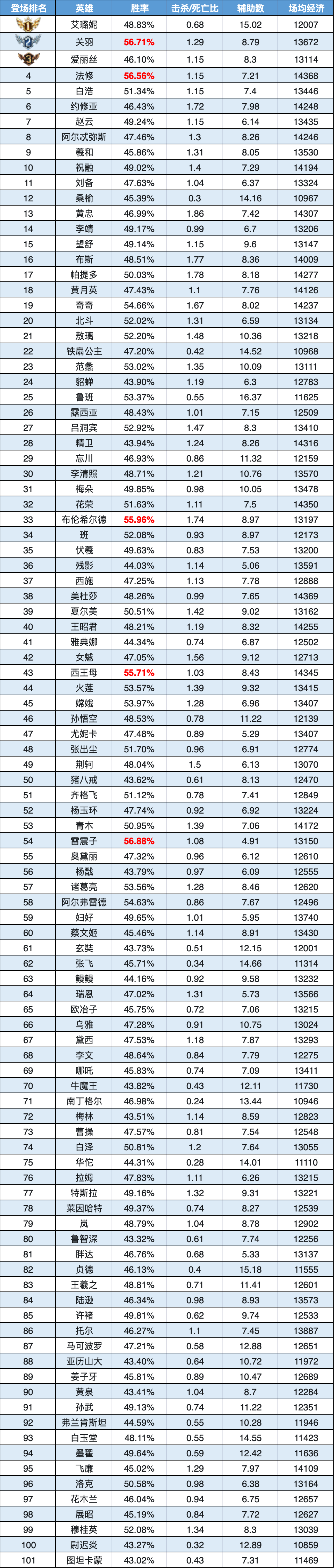 禁用率榜-帕提多登顶,关羽出道即巅峰