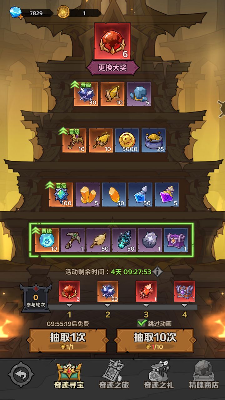 做满4轮,可额外获得宝石重置器60+幻羽精粹传说+红色随机铭纹。