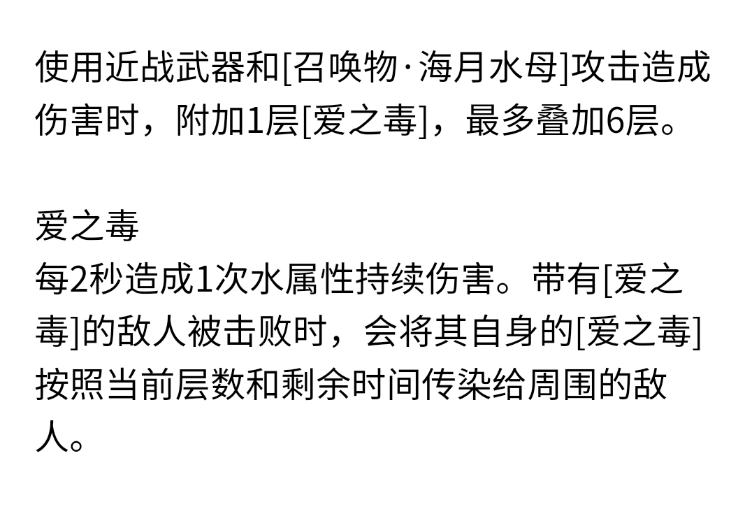 能给丽蓓卡带来技能耐久,不过战斗上我们主要还是用近战武器,因为它可以触发,丽蓓卡的【爱之毒】伤害。
