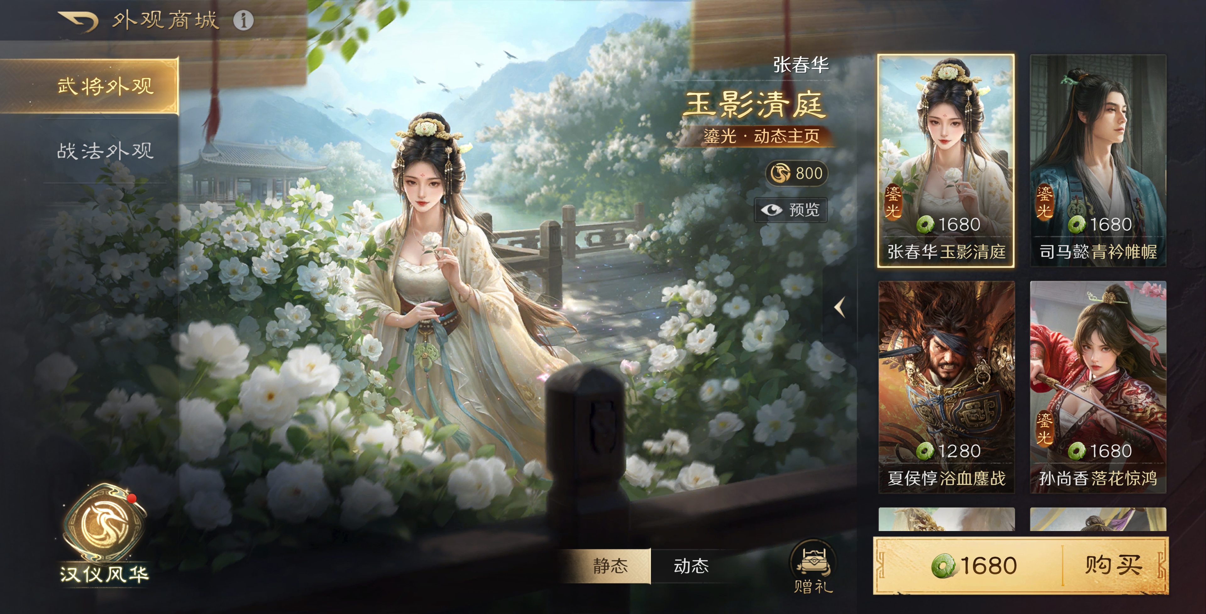 主公进入外观商城后,即可点击下方「汉仪风华」进入界面。