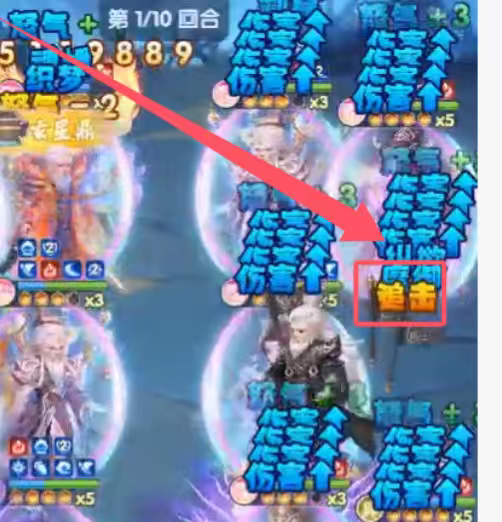 2.带个周天星斗阵(让盾天在后排第5位置)触发普攻追击。