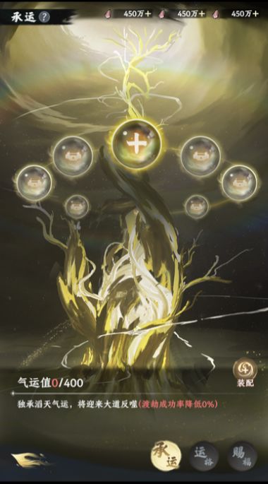 在修炼界面中,你将找到“气运”入口。其核心,便是一棵为你承载天命因果的 【承运神树】。