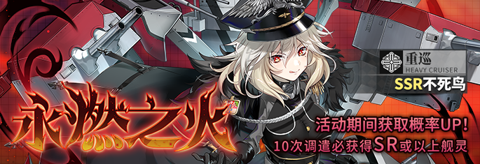 维护指挥官可通过「紧急调遣证」在「永燃之火」活动调遣中获取限定SSR舰灵「不死鸟」,且该角色的获取概率将在活动期间大幅提升!具体概率将在游戏内公示。