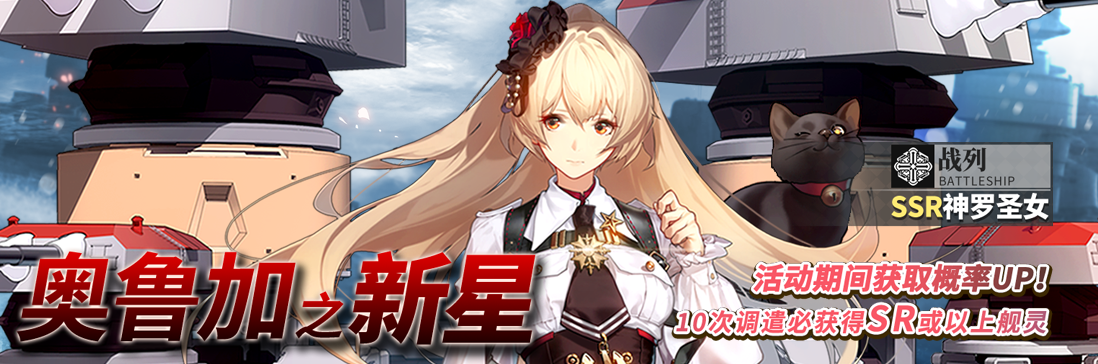 指挥官可通过「紧急调遣证」在「奥鲁加之新星」活动调遣中获取限定SSR舰灵「神罗圣女」,且该角色的获取概率将在活动期间大幅提升!具体概率将在游戏内公示。