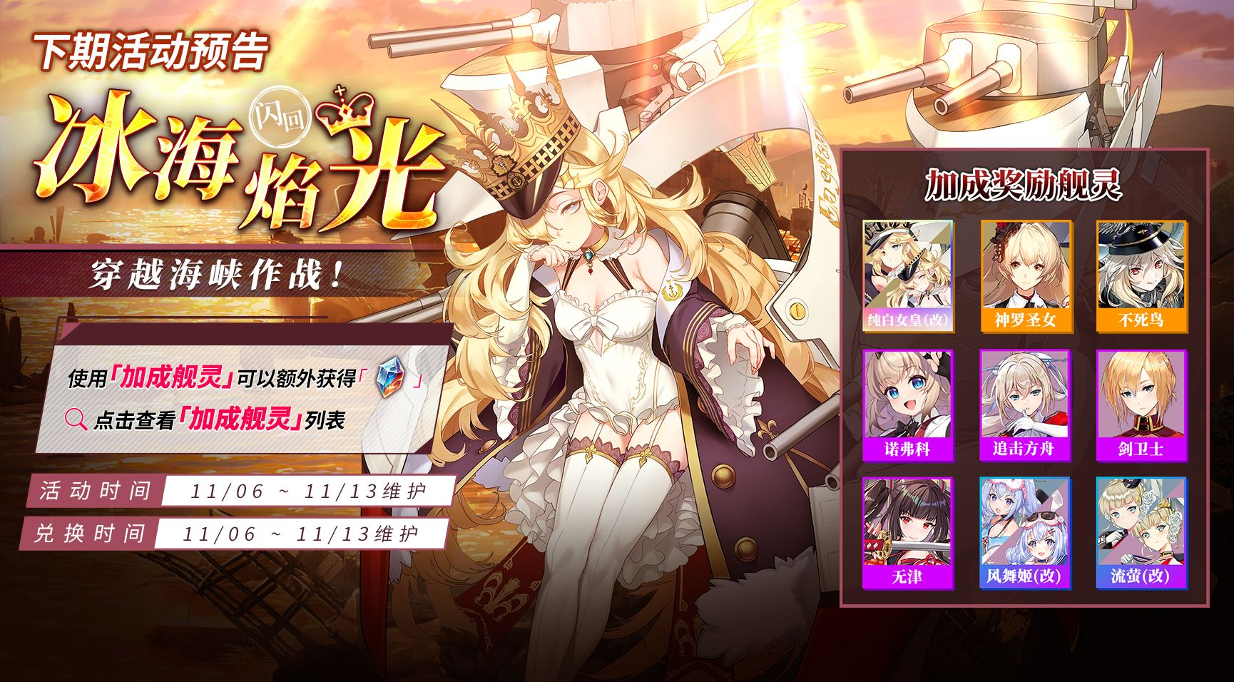 ※加成舰灵:在活动关卡中使用这些舰灵,可获得额外的「冰与火」奖励;