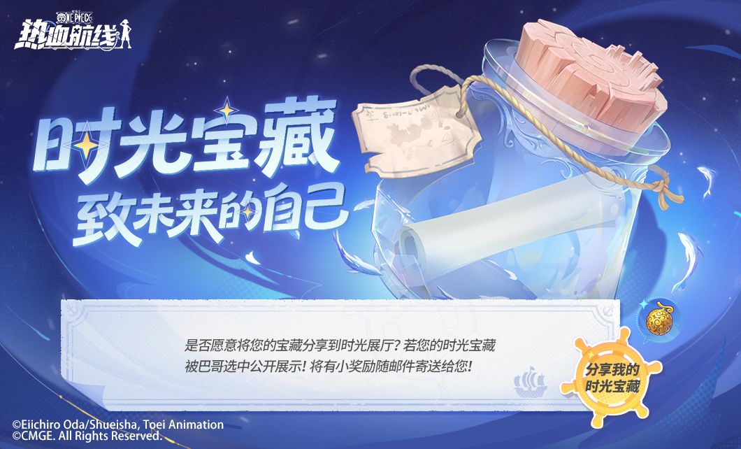 -寄出信件后可获得寄信礼和对应信件快照道具,每位船长仅可寄出一次时光宝藏,将会在信件抵达未来时展示在时光展厅中。
