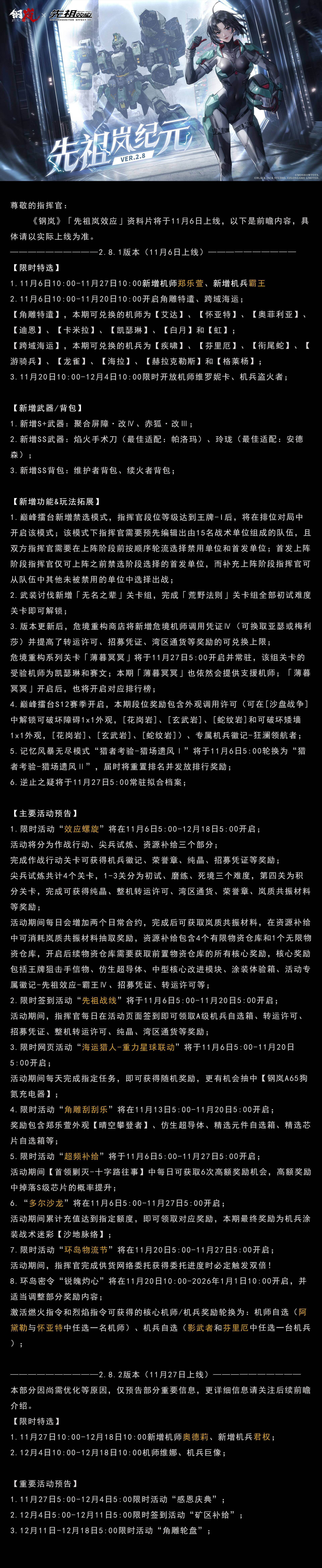 钢岚2.81~2.82小联动版本先祖岚纪元,全部内容整理(至12月17号)