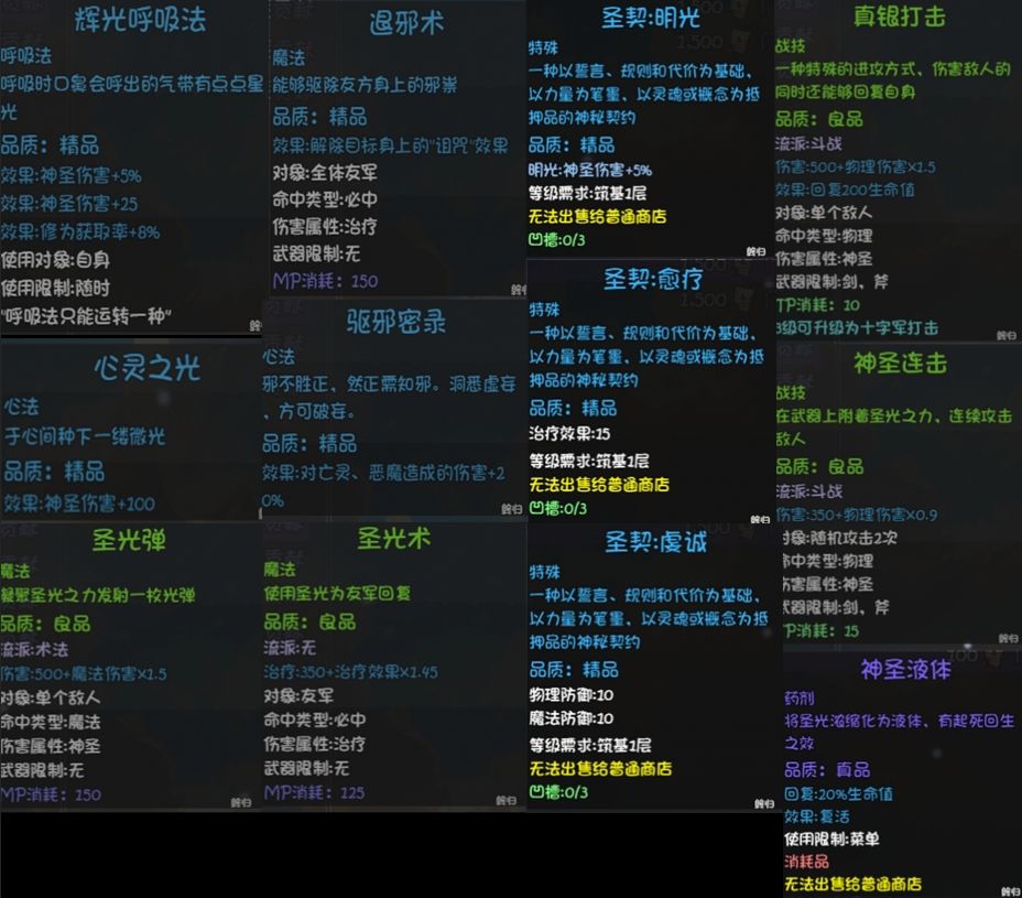 圣光转黑暗骑士团可以多买些驱邪密录(刷鬼专用尽量五个以上),圣契一样俩,全能光环(必须换),圣光弹/神辉诀四个以上。