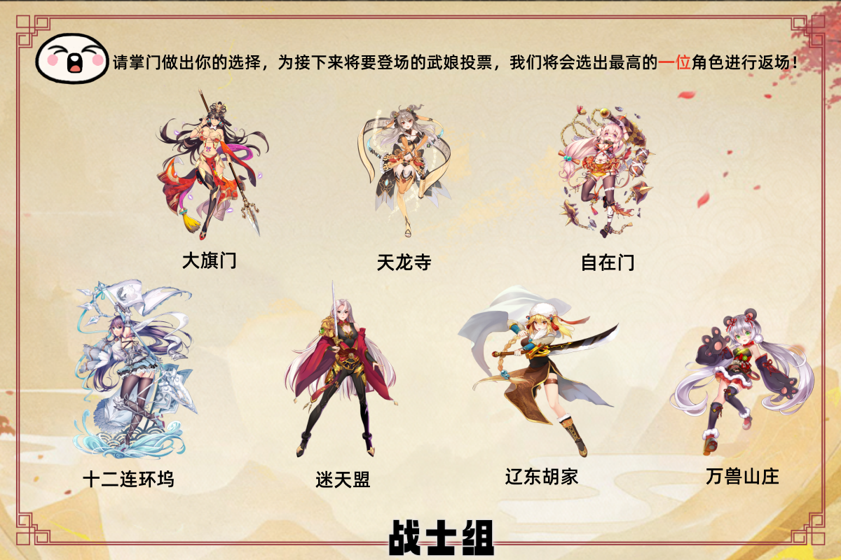 今天是评选战士一组武娘角色的时间,本次的投票时间为: