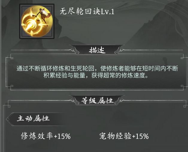 心法:一些心法书是增加修炼效率的,比如“无尽轮回诀”