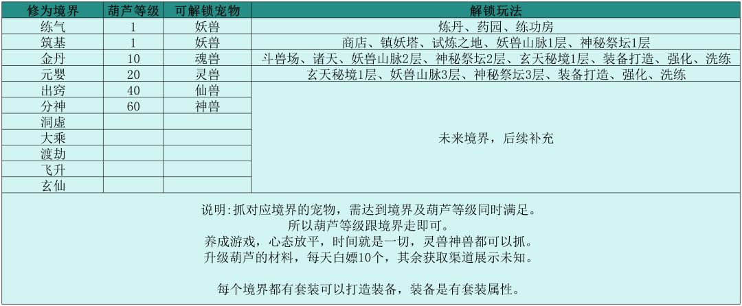 游戏核心就是抓宠,妖兽、魂兽、灵兽、仙兽、神兽、X兽对境界及葫芦等级都有要求