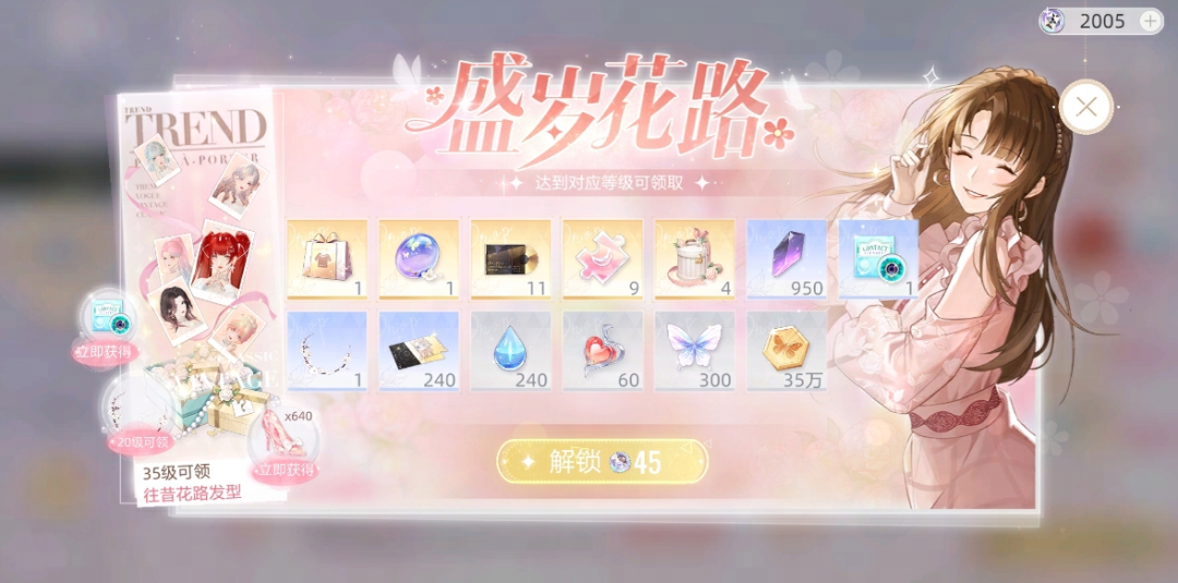 新一期花路将于11月7日(本周五)开启,进入花路界面后,艺人们点击“选择往昔发型”,即可在全部未拥有的花路发型中任选一款,随后解锁本期盛岁花路。当花路等级达到35级,就可以领取你选择的发型啦!