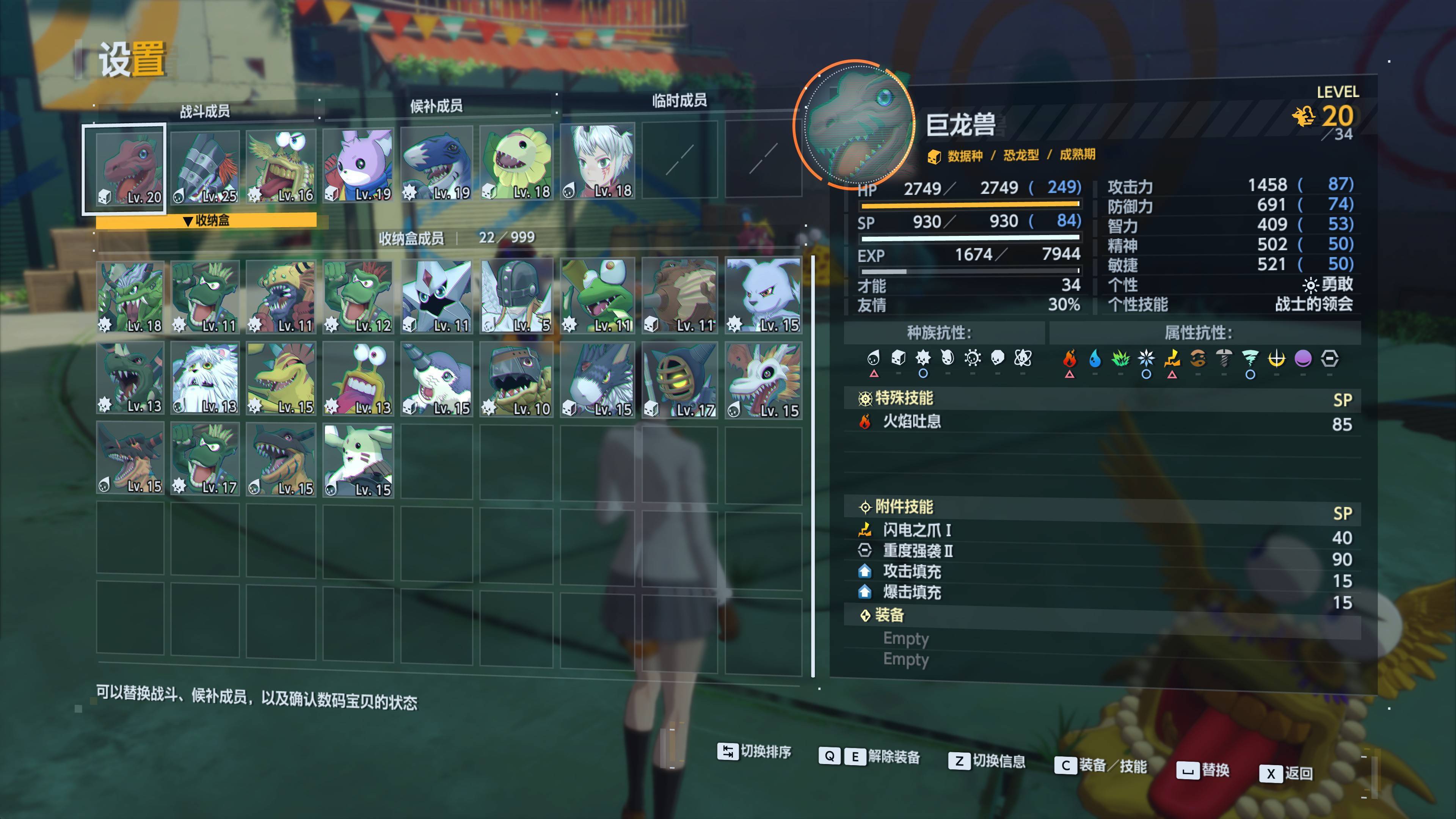 除了战斗系统以外,数码宝贝养成的可玩性也很高。如果对当前数码宝贝的属性值不满意,我们可以通过改变性格再退化重练,有刷经验dlc的话很快就能练回来,或者也可以直接扔到农场里挂机升级。不过比较蛋疼的是进化和探员的等级挂钩,假如你只做主线就升得很慢,必须多做支线才能快速提高探员等级,对于想当十里坡剑神的玩家来说会有点难受了。