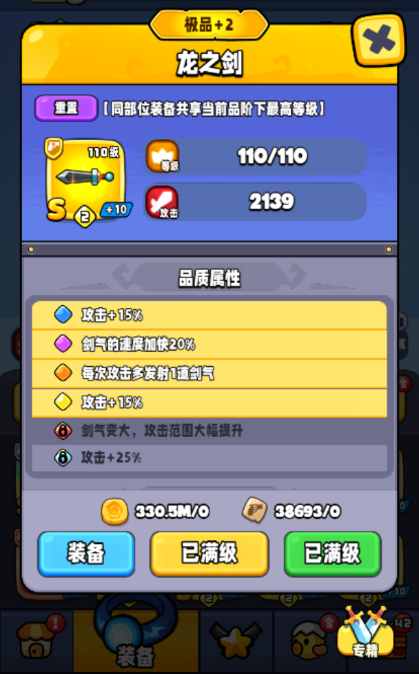 1、只有极品及以上品阶的装备才可以进行专精,不同品阶装备的专精等级上限不同;
