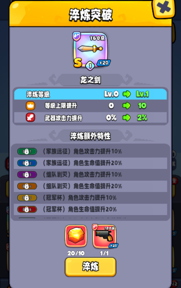 5、淬炼等级提升,将会额外提升对应装备的基础等级上限;