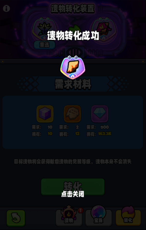 2、遗物转化可以将一件达到深渊品质的遗物的觉醒等级转移给另一件达到传奇或以上品质的遗物;