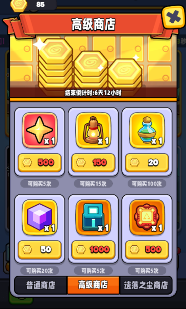 2、通关【起源荒野】和【坠星祭坛】获得的深渊高级兑换币可以在高级商店中兑换道具;