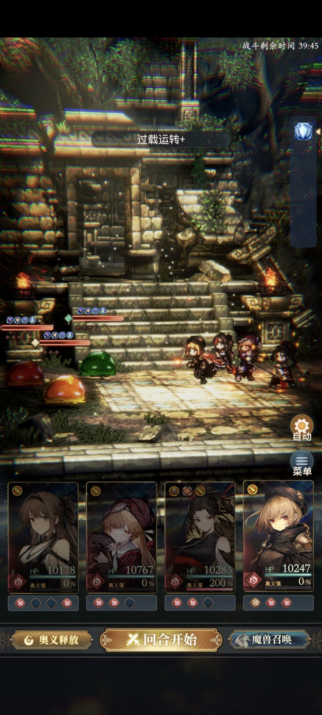 首回合也不要忘记魔物buff,由于魔物技能每回合只能使用一次,其他魔物技能堆在任意地方都可以。(增伤、护盾、恢复、增益减益可以按需调整位置)