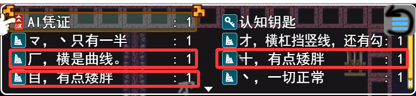 (21)第二轮出示三个碎片是(厂 十 目),然后再次与boss对话,选择组成的真名。