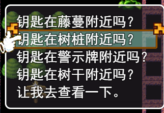 (11)再次对和平鸽出示“操作员的手写记录”,发现它只能说谎的状态,通过这个,发现钥匙在树桩里,与树桩交互,找到钥匙。