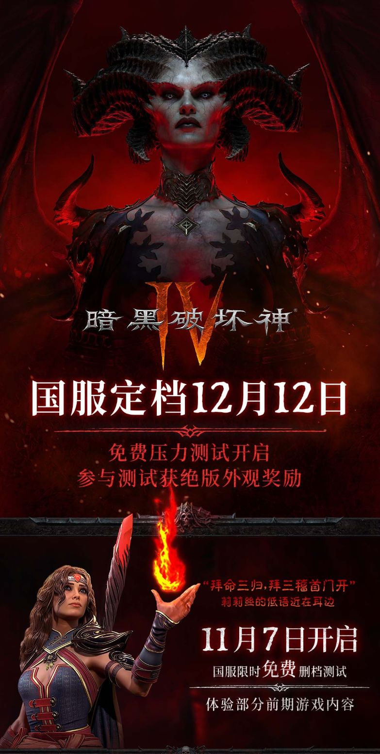 《暗黑破坏神4》国服官宣12月12日正式上线!后续版本将与全球同步更新,国服预约现已开启。