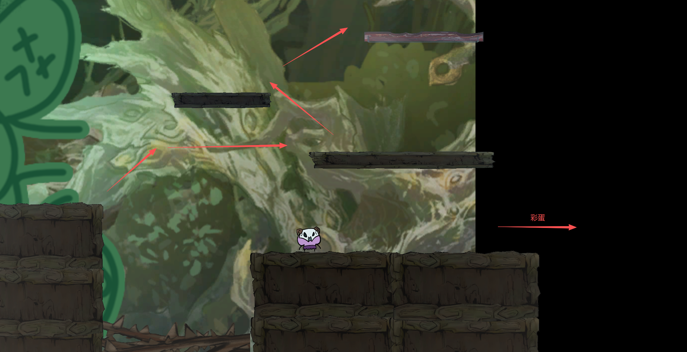 向下跳过第一处荆棘后冲刺往回贴住墙面下滑,下滑到超过下一处平台时跳跃后翻