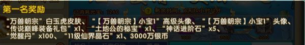 1、本次四轮排行榜前五名,可分别获得【万兽朝宗】系列的红鸾1灵兽、小宝1灵兽、哪吒1灵兽、嫦娥1灵兽皮肤。