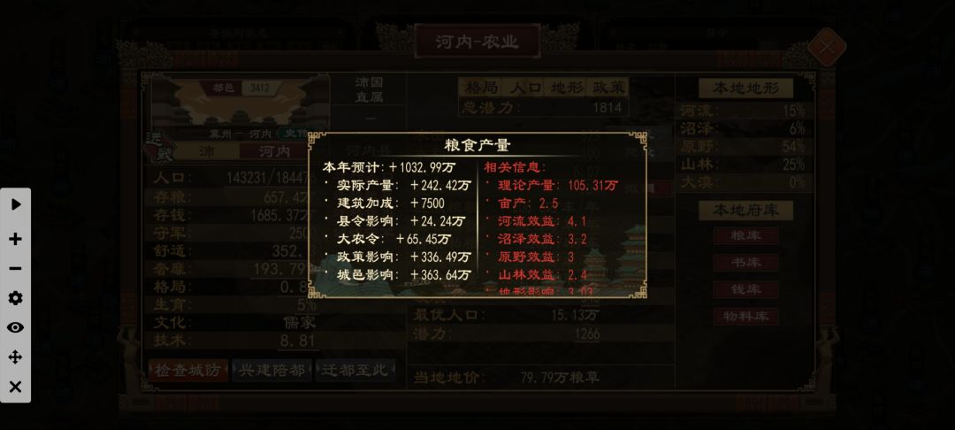 理论粮产计算完地形和粮种后得到实际粮产,就是治理效果加的基数