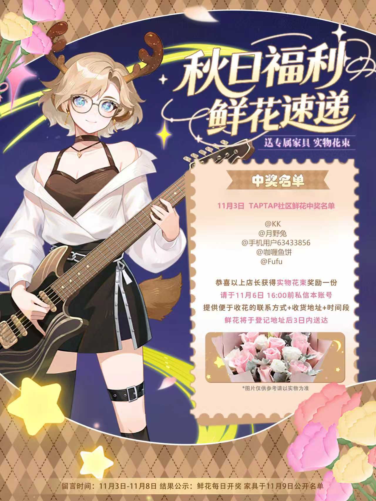 每日开奖 | 11月4日实物鲜花中奖名单开奖喽~(活动还没结束哦)