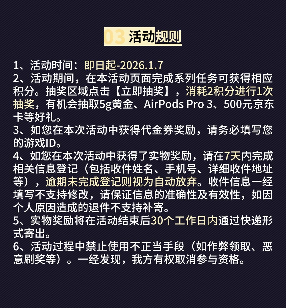 活动期间,完成以下任务即可获取积分,2积分可以兑换1次抽奖机会