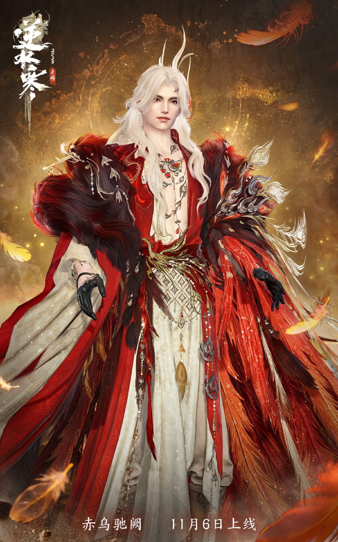 11月6日(星期四)至12月5日,逆水寒全新金乌主题时装【赤乌驰阙】将限时上架商城,直售价【2880纹玉】,可使用限定纹玉、代金券、半价券。获取时装后,各位同门还将同步解锁黑发头像、单人动作、双人动作以及群龙之首动画。还有裁剪款为您提供更多搭配。