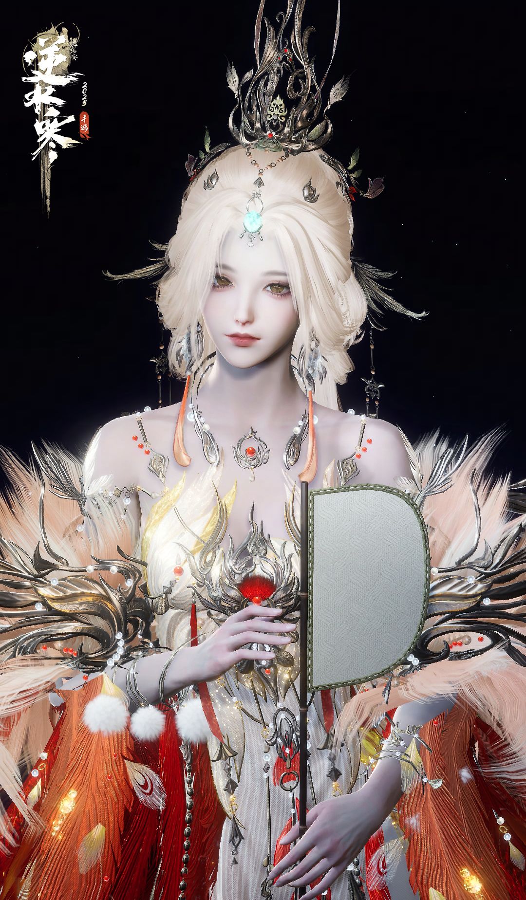 神鸟的羽毛似是历经了炽热火焰的淬炼,拥有别具一格的光泽与独特的质感。红白相间的长袍,再披上这象征身份的羽毛,中华太阳神的神秘威严之姿便跃然眼前。透过这身装扮,仿佛能看到太阳神掌控光明、驱散黑暗,让世间重归光明的强大力量。