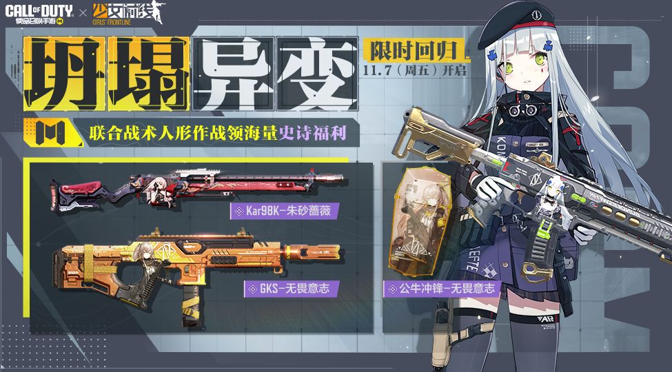 少女前线联动返场,战士们准备好了吗?11月7日(本周五),联动活动坍塌异变再度上线,战士们参与肉鸽小游戏,即可解锁超精美联动史诗级武器啦~
