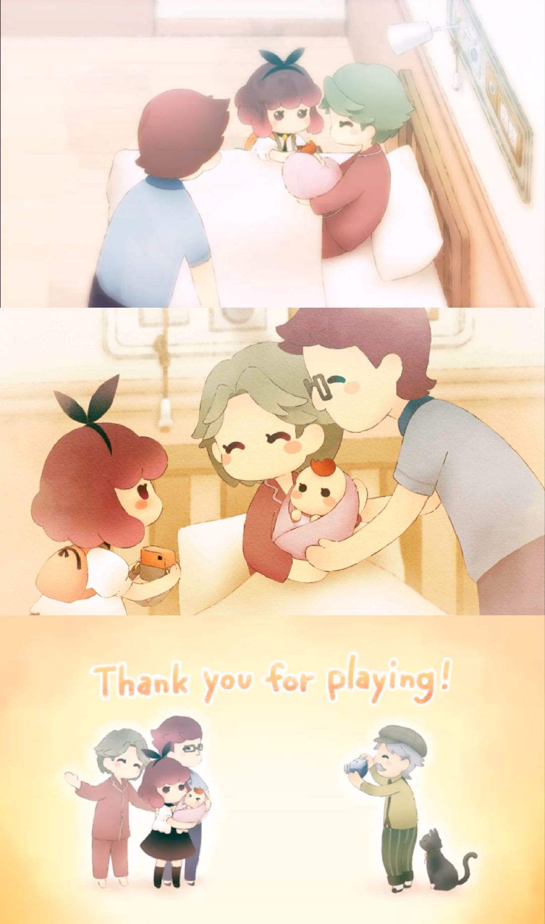 第三部终于通关了。这一部(Stray Cat Doors3)比第二部要难,虽然只有5关,但是每个关卡场景多、解谜设置多且有难度,总之通关还是要费些时间和脑力的。游戏故事与之前两部不同,不过仍然是以小女孩和猫咪为主角的,着重展开小女孩的生活和情感,猫咪是这一切的见证者。小女孩用相机记录了妈妈从怀孕到生产的过程,以及与爷爷所在小镇居民相处的日常。虽然在这个过程中,她会害怕父母有了二胎就不再爱自己,但最终她还是和父母一起迎接了来到这个世界的小生命。